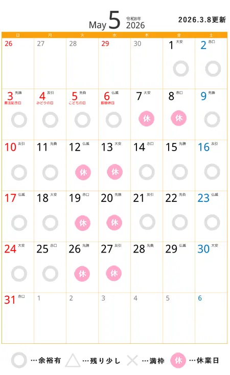 〇撮影枠の空き状況になります/衣裳合わせやご相談は空きがある場合もあります