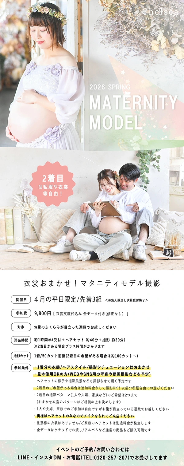 【先着3組限定!4月の平日限定】マタニティモデル撮影