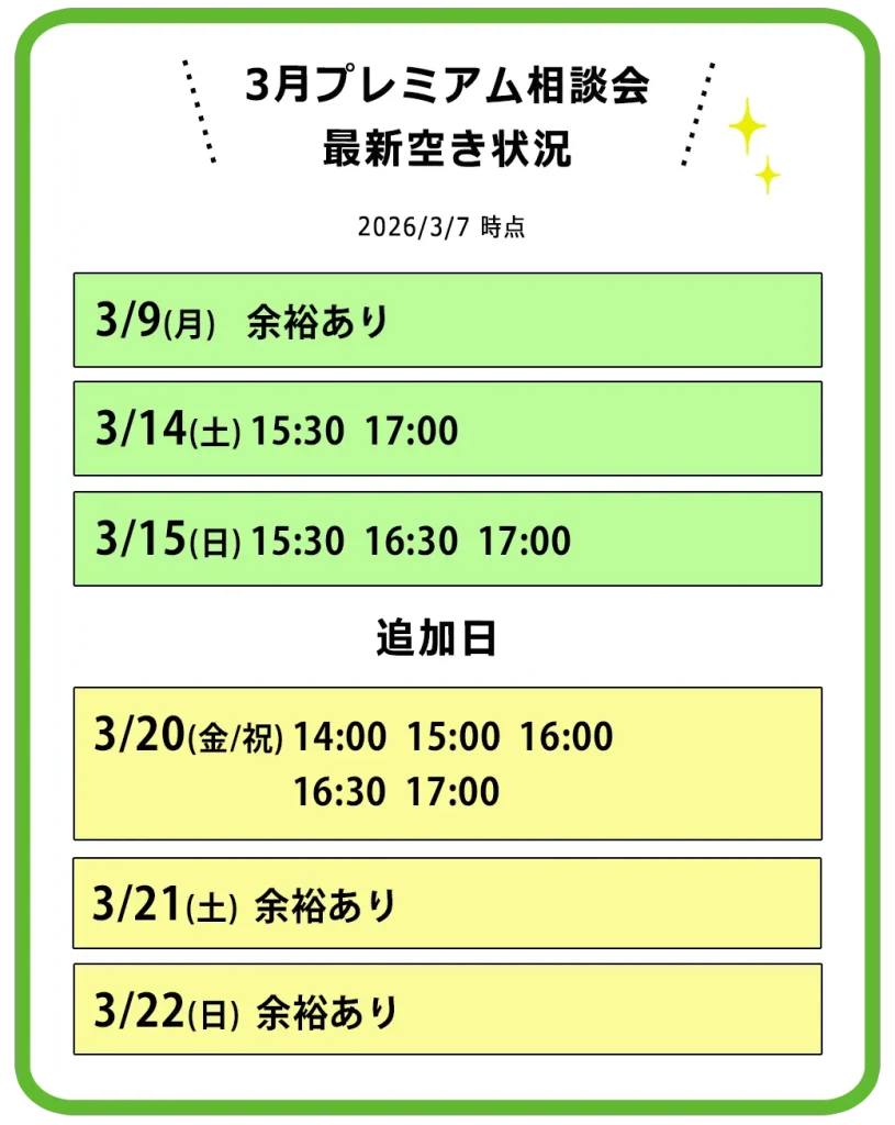 ご予約のお客様が優先ですので、基本的にはご予約なしでのご来店はご遠慮しております。直前でもご案内可能なお時間がある場合がございますので、お気軽にお電話でお問い合わせください。