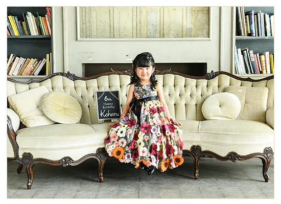 ドレスがとてもおしゃれで、ヘアメイクもとても素敵なので今回もバースデーフォトは絶対チェルシーさんで撮ろうと決めていました。娘もプリンセスになりきっていました。