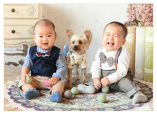 スタッフさんやお店の雰囲気がとても良かった。双子とペットの撮影でとても大変な中笑わせてくれて楽しませてくれてとても楽しく撮影してもらえてよかったです